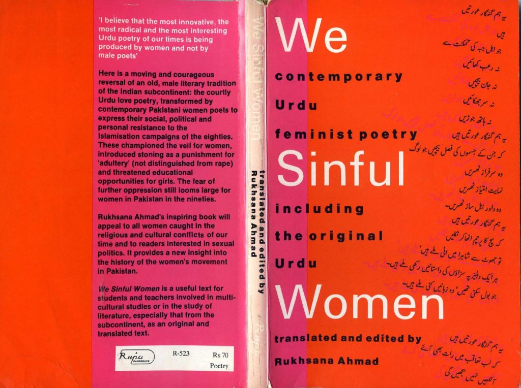 Participants were invited to read the title poem from the collection We Sinful Women: Contemporary Urdu Feminist Poetry (trans. Rukhsana Ahmad, The Women’s Press, 1991) in advance of the event. This is available at: https://www.poetryinternational.com/en/poets-poems/poems/poem/103-23748_WE-SINFUL-WOMEN.