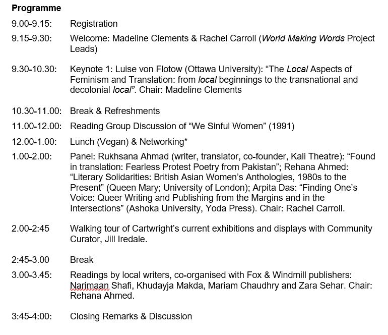 World Making Words: Connecting women’s literary agency, activism and enterprise in South Asia: Workshop 3 on Translation, Publication, Diaspora, Marketplaces.